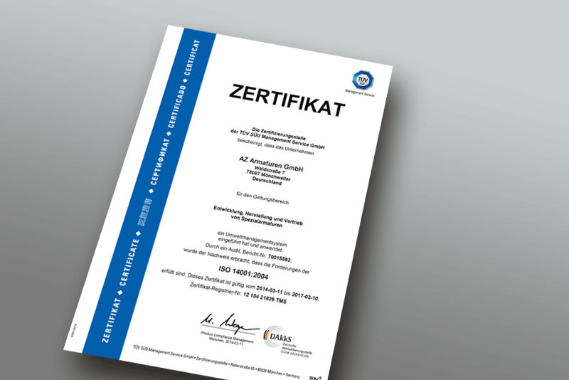 Im Zuge der Rezertifizierung des ISO 9001-Zertifikats wurde auch das neu eingeführte Umweltmanagementsystem gemäß ISO 14001:2004 bei AZ erfolgreich geprüft und zertifiziert. Die internationale Umweltmanagementnorm ISO 14001 legt weltweit anerkannte Anforderungen an ein Umweltmanagementsystem fest. Diese Norm enthält Umweltkennzahlen bzw. Umweltleistungsbewertungen und legt einen Schwerpunkt insbesondere auf kontinuierliche Verbesserungsprozesse von Umweltleistungen.